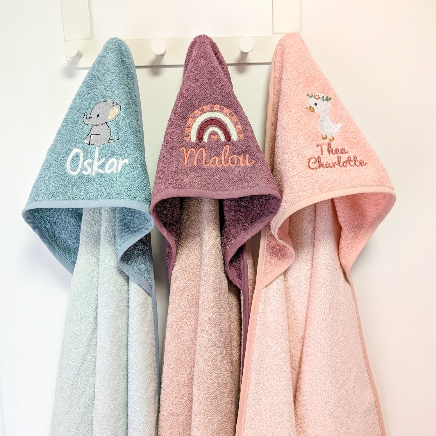 Unsere Kapuzenhandtücher aus hochwertigem Baumwoll-Frottee sind besonders sanft zur Babyhaut, saugfähig und halten nach dem Baden warm. Die Kapuze schützt das Köpfchen, während die Personalisierung mit Namen oder Motiven sie zu einem idealen Geschenk zur Geburt, Taufe oder Babyparty macht. Erhältlich in verschiedenen Farben für Mädchen und Jungen. Bestelle jetzt dein personalisiertes Kapuzenhandtuch und mache die Badezeit noch besonderer!