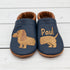 Krabbelschuhe mit Dackel und Name bestickt in verschiedenen Farben wählbar
