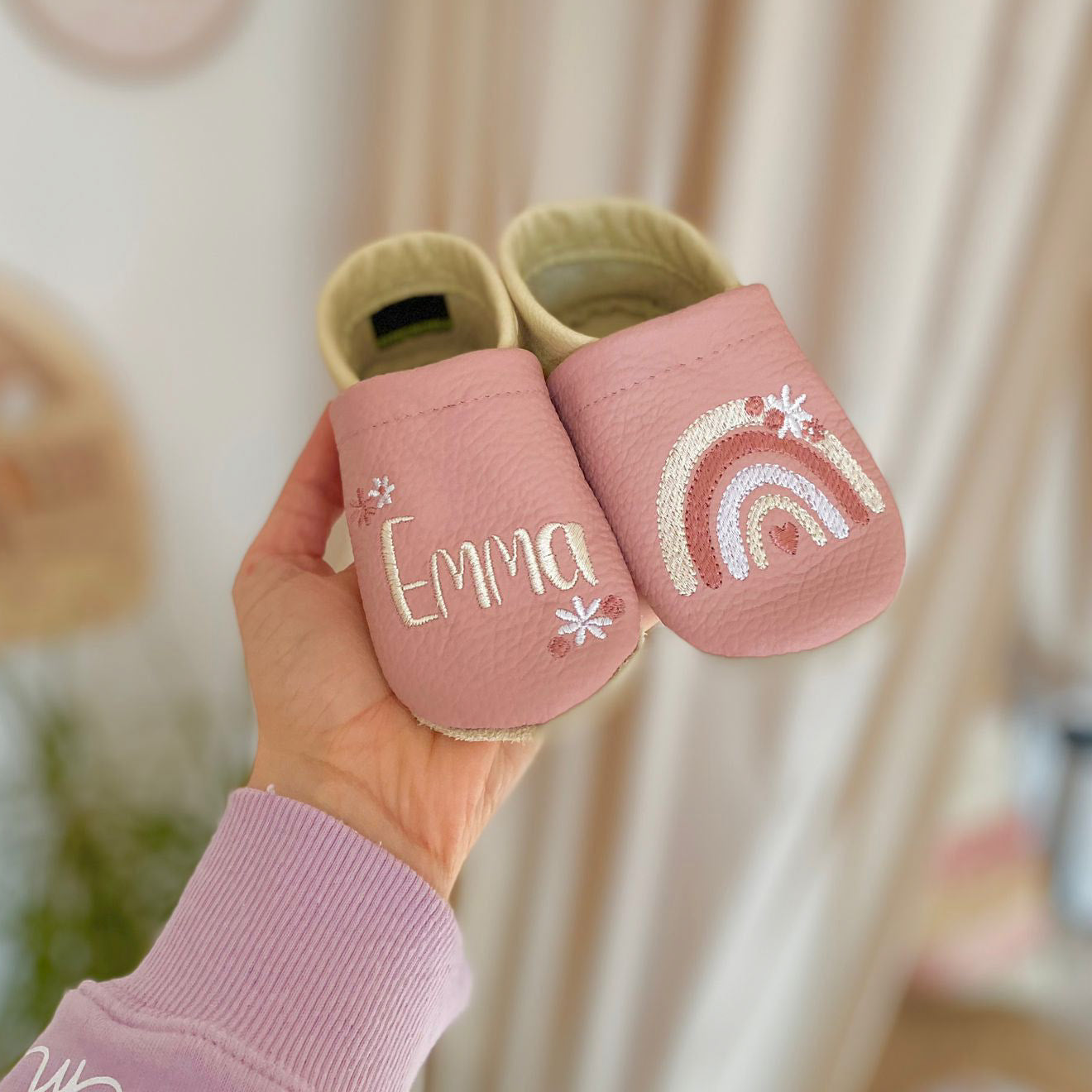 Krabbelschuhe in beige und rosa mit rosa Blumen für Emma in Größe 19Verkäufer/in:Krabbelschuhe in beige und rosa mit rosa Blumen für Emma in Größe 19Krabbelhelden