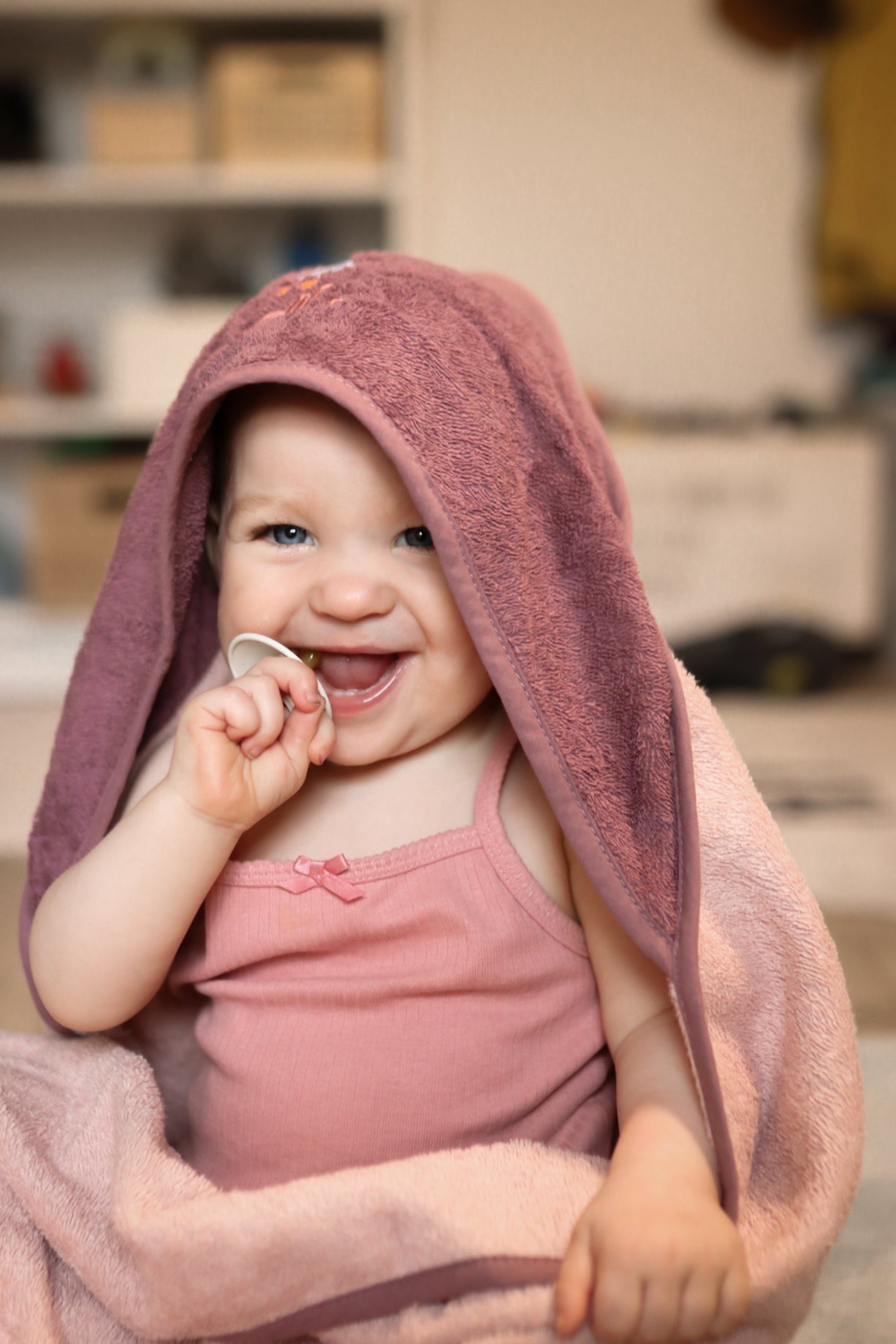 unsere weichen Kapuzenbadehandtücher sind perfekt nach jeder Badezeit um mit Liebe eingekuschelt zu werden.